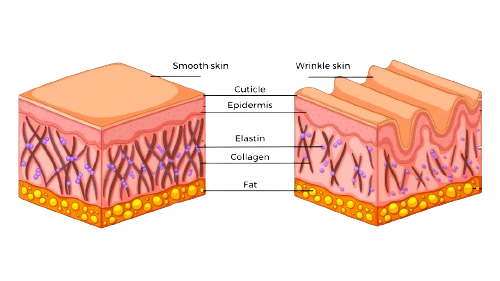 The production of collagen and elastin, which are essential proteins responsible for skin elasticity and firmness, decreases over time. This reduction leads to a loss of skin support and contributes to the formation of wrinkles.